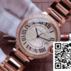 CASE: V6 Factory offers a stunning clone of the Ballon Bleu De Cartier watch with a remarkable 42mm case crafted from luxurious 18K rose gold. Set with a diamond bezel, this replica faithfully copies the opulence and elegance synonymous with Cartier. The brushed bottom case is secured by 8 screws, mirroring the original’s precision and ensuring durability.