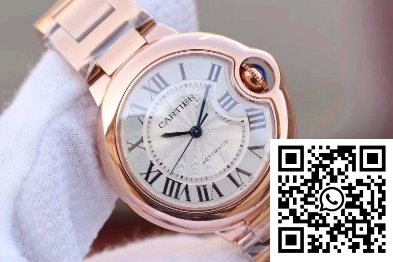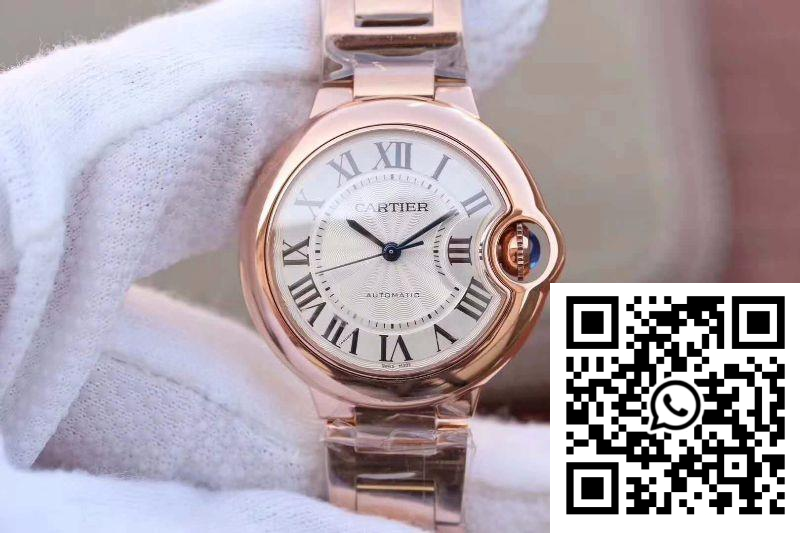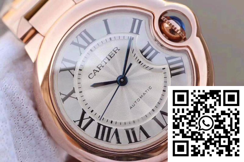 Bezel: The fixed bezel of this knockoff watch is crafted from solid 18K rose gold, complementing its overall luxurious aura. Its clean and polished surface enhances the replica’s glittering appeal, manifesting Cartier’s sophisticated charm, which is vital to the Ballon Bleu collection.