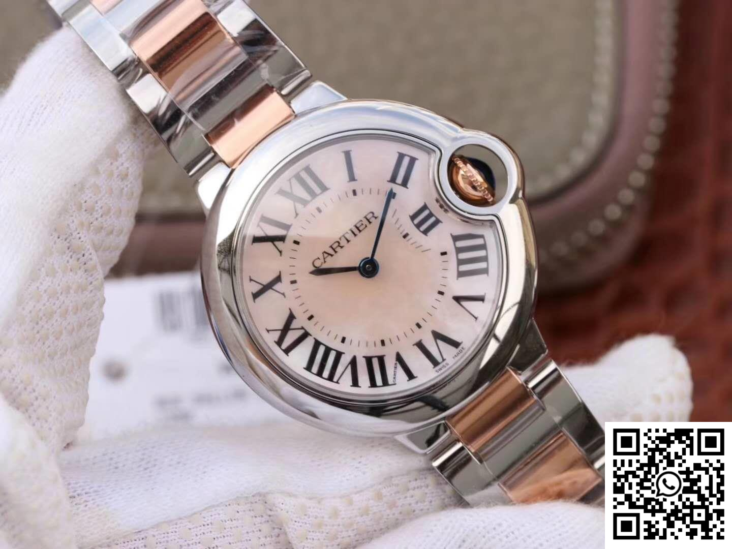 Fake Ballon Bleu De Cartier W69201 Ladies 33MM Pink Dial by V6 Factory – A Masterpiece of Refined Elegance