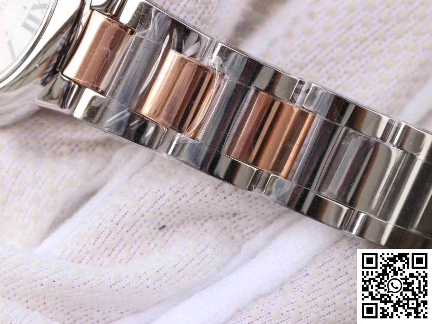 Bracelet: The intricately designed stainless steel bracelet, with alternating polished and brushed finishes, adds a touch of luxury to this replica watch. It features a secure folding buckle engraved with the Cartier brand logo, offering both style and safety.