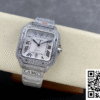 CASE: The Cartier Santos WSSA0011 AMG Factory replica watch features a robust yet elegantly crafted 40mm case made from premium-grade stainless steel. Meticulously designed with ultra-fine polishing techniques, the case retains the iconic squared shape synonymous with the Santos series while appearing meticulously identical to the original design in dimension and weight. The screw-down case-back and precisely replicated proportions ensure both durability and aesthetic perfection, embodying Cartier’s timeless elegance.