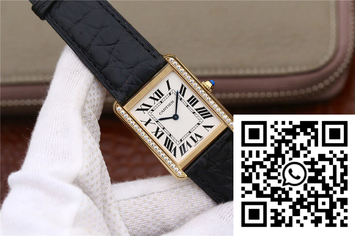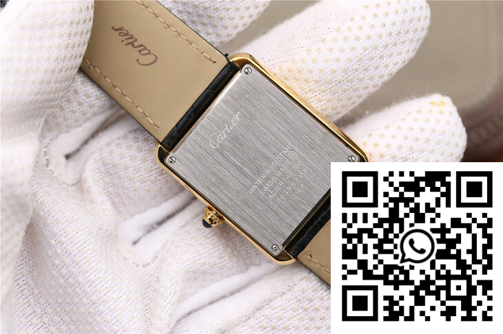 Bracelet: Featuring a stainless steel bracelet firmly anchored by a secure clasp mechanism, this component promises stability and style. Each segment mirrors the Tank’s original bracelet design, ensuring that the watch exudes sophistication and grace with every motion.