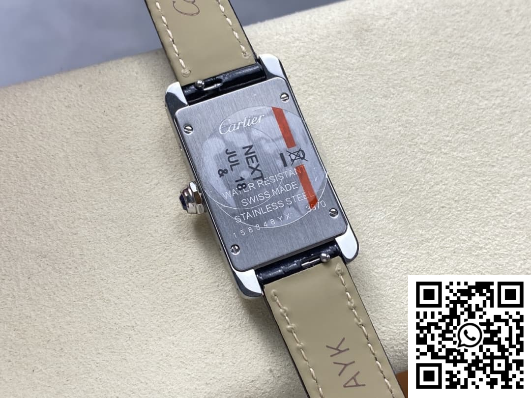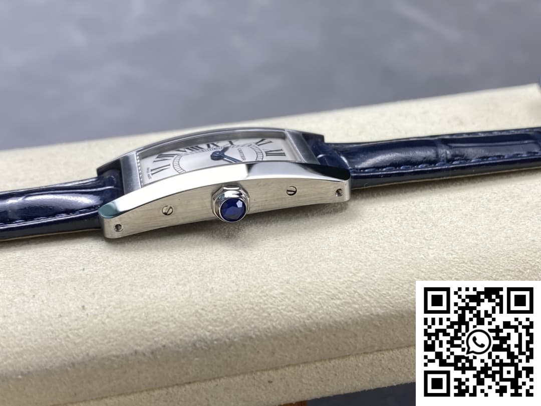 CASE: The 8848 Factory’s 1:1 replica Cartier Tank WSTA0050 showcases a meticulously crafted case measuring 41.6mm x 22.6mm. Constructed with premium-grade stainless steel, the case is polished to perfection, capturing the timeless rectangular design that Cartier is renowned for. The ultra-thin case replicates the sophistication and minimalist lines of the original, offering a refined aesthetic and remarkable durability. It features a subdued crown with a sapphire cabochon, echoing the iconic details that define the Cartier Tank.