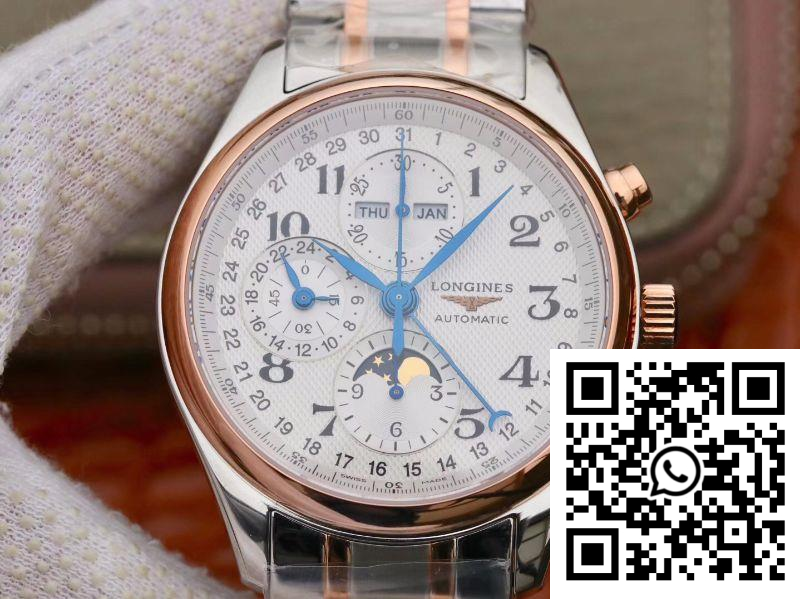 Bracelet: Its stainless steel and rose gold strap seamlessly complement the case design, complete with a steel folding clasp. This detail not only adds to the watch’s opulence but also guarantees comfort and security, with the polished clasp bearing the engraved Longines brand logo for an added touch of authenticity.