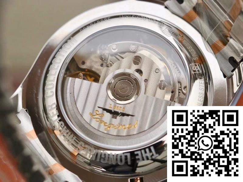CASE: The GS Factory Conquest Classic L27735787 replica watch showcases a meticulously crafted 40mm stainless steel brushed polished case. Its blend of robustness and elegance, adorned with an 18K rose gold polished bezel, highlights a perfect amalgamation of luxury and durability. The case thickness of 14.5mm is faithful to the original, offering the seamless fit that Longines timepieces are celebrated for.