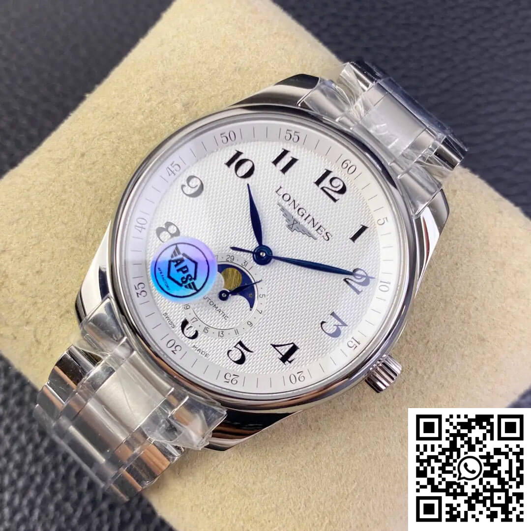 Dial: This exquisite replica showcases a pristine white dial enclosed in a double-sided sapphire crystal. This choice of material provides exceptional resistance to scratches and enhances visibility, embodying the watch’s all-occasion versatility for both formal and casual settings. The dial is detailed authentically to capture the timeless allure that the Longines Master Collection is renowned for.