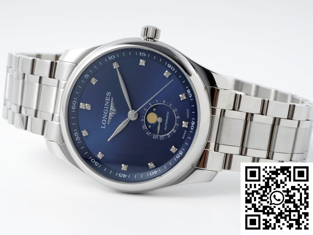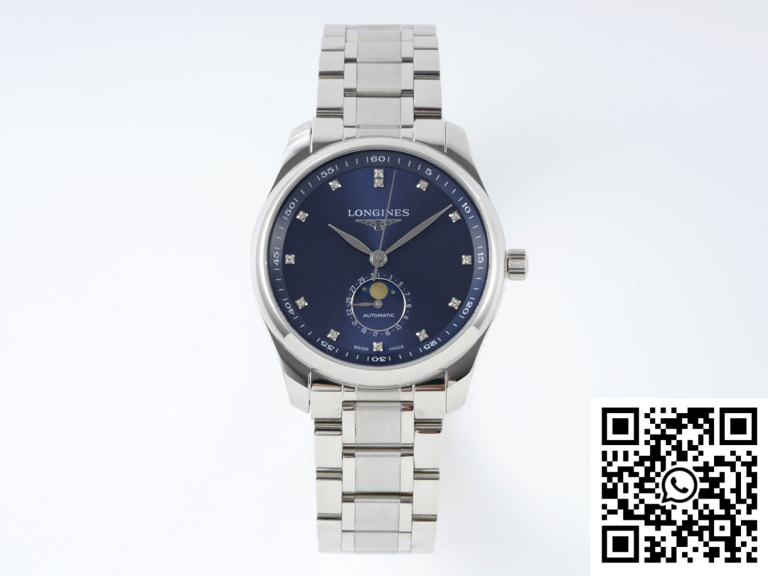 CASE: The case of the Longines Master Collection L2.919.4.97.6 APS Factory Blue Dial is meticulously replicated to match the original. Crafted from top-quality stainless steel, the 42mm case exhibits an exquisite polished finish that mirrors the elegance of the genuine piece. This knockoff ensures durability and shines with a timeless appeal. The case-back is a perfect 1:1 replica, featuring transparent sapphire crystal that showcases the beauty of the movement inside.