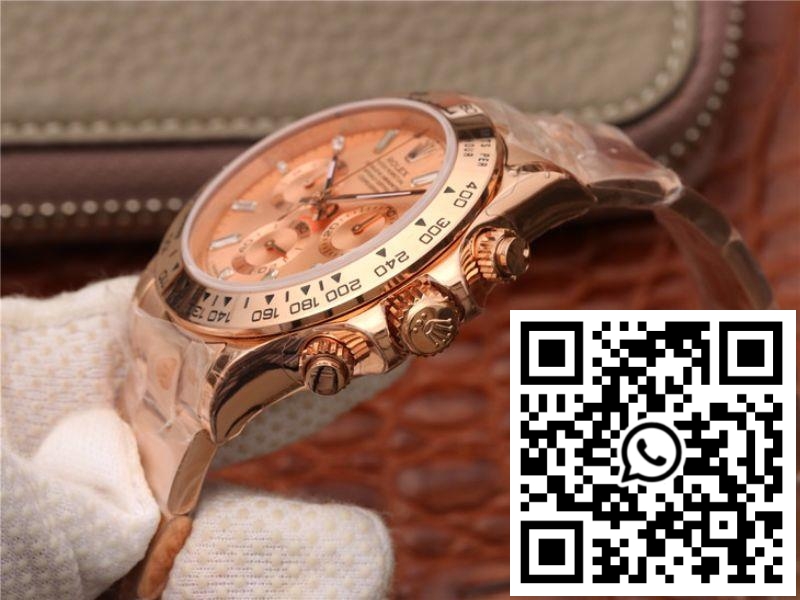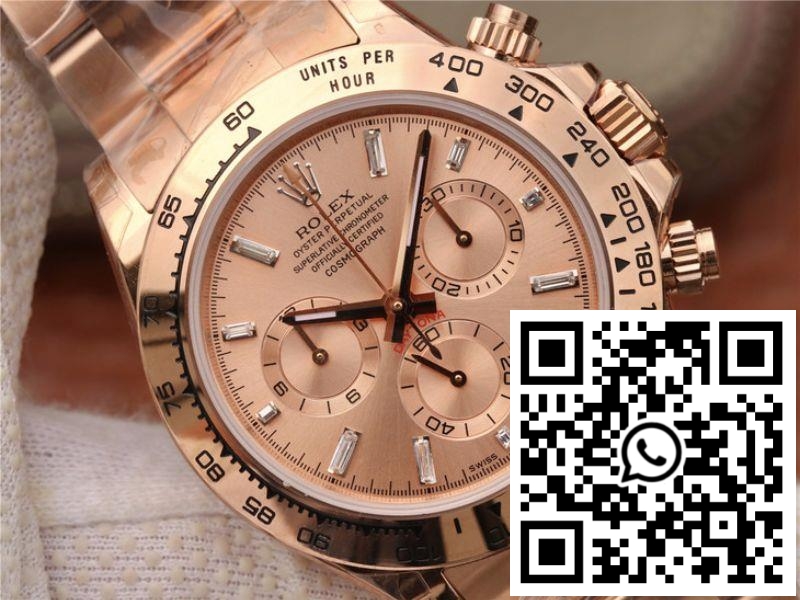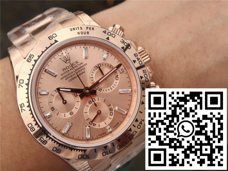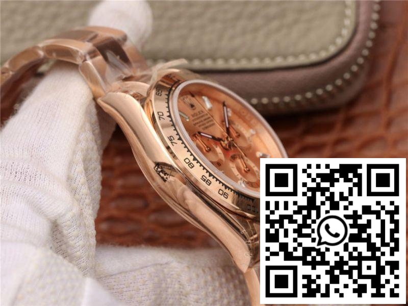 Bezel: The rotating rose gold bezel is engraved with a black-speed scale, underscoring the precision and performance synonymous with the Daytona series. This well-crafted bezel not only enhances the aesthetic appeal but also functions seamlessly during timekeeping operations.