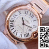 CASE: The V9 Factory has masterfully replicated the timeless 42mm case of the Ballon Bleu De Cartier W69006Z2, crafted in luxurious 18K Rose Gold. The case features a compact brushed bottom engraved with signature Cartier branding, ensuring an elegant finish that mirrors the genuine design. The grooved crown, adorned with a convex sapphire, completes the regal aesthetic, offering a touch of sophistication unique to this superb clone.