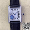 Dial: The silver-plated dial on this replica watch is a testament to expert craftsmanship. The three-dimensional printing on the dial is full and defined, exuding a premium feel that captures the iconic aesthetic. The burnt steel blue hands are synchronized to match their genuine counterparts, while the central axis shares a refined silver finish. Every detail of the dial’s typography, positioning, and finishing is meticulously cloned to align with the genuine Cartier Tank design.