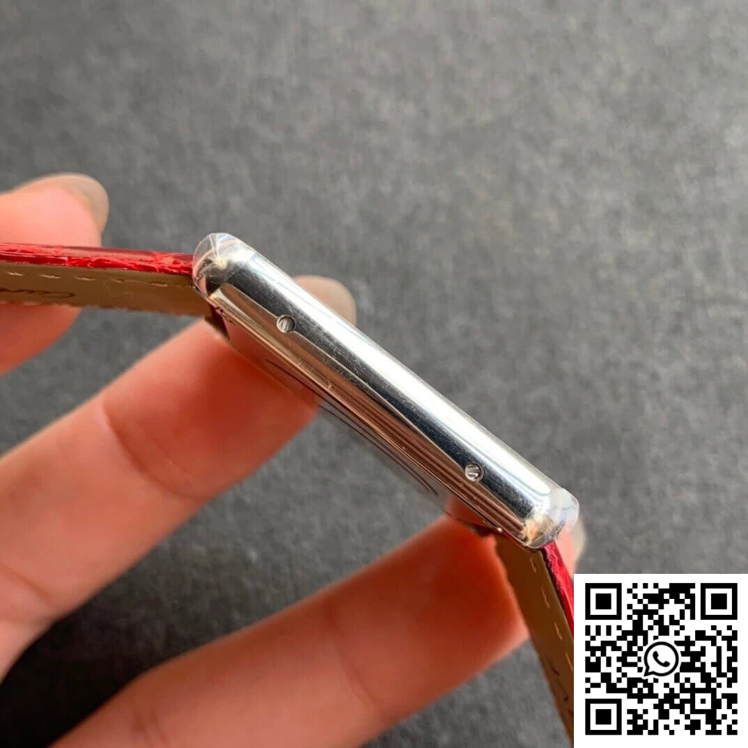 Bezel: The bezel features a classic polished stainless steel finish that seamlessly complements the overall design of the watch. Its smooth surfaces and precise contours emphasize the timeless appeal of the Cartier Tank while maintaining authentic proportions and feel.