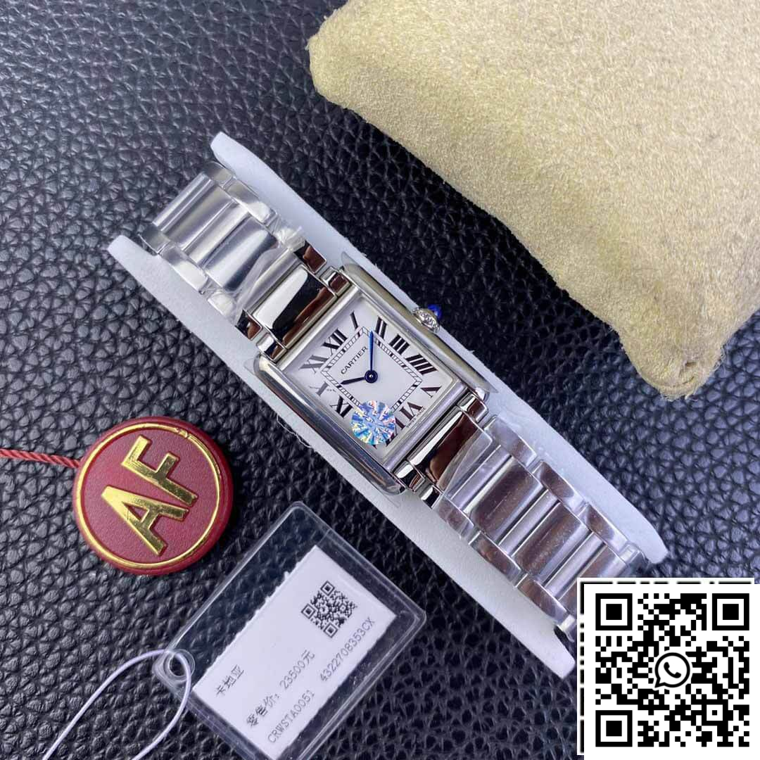 CASE: Crafted by the renowned AF Factory, this fake Cartier Tank WSTA0051 replica exudes sophistication with its iconic rectangular case measuring a petite 29.5x22mm, complemented by a slim 6mm thickness. This careful imitation of Cartier’s signature design is polished to perfection, ensuring smooth edges that are both aesthetically pleasing and comfortable against the skin. The sturdy stainless steel build offers durability while maintaining a sleek, elegant appearance.