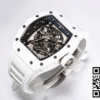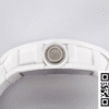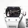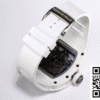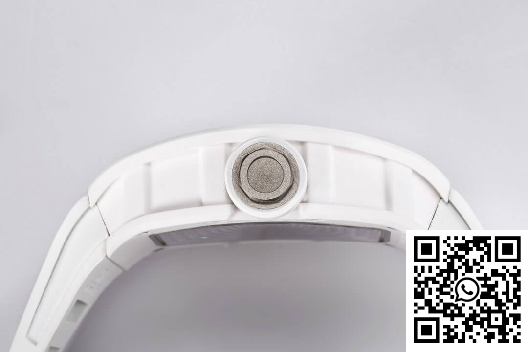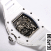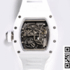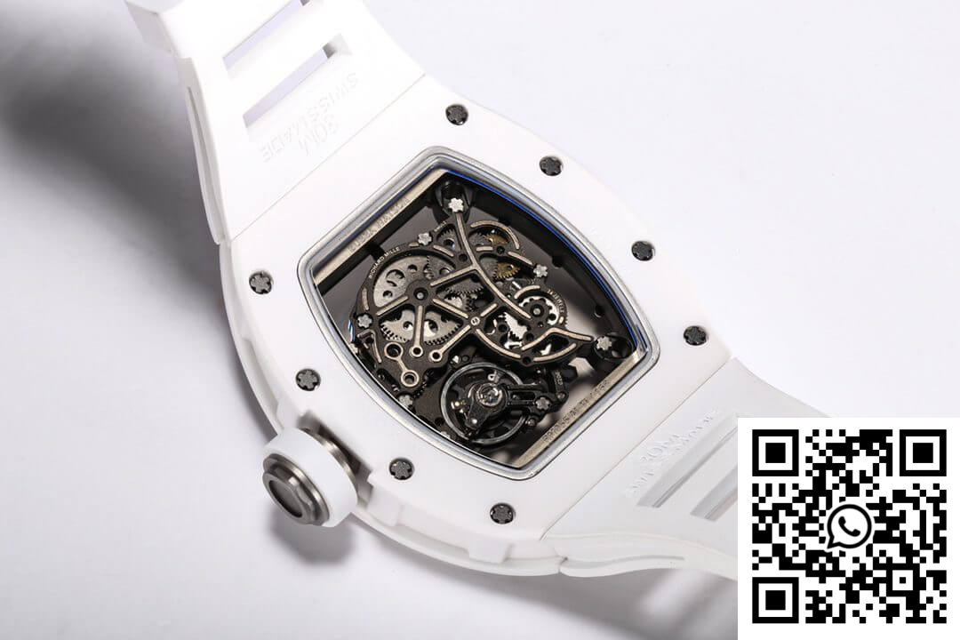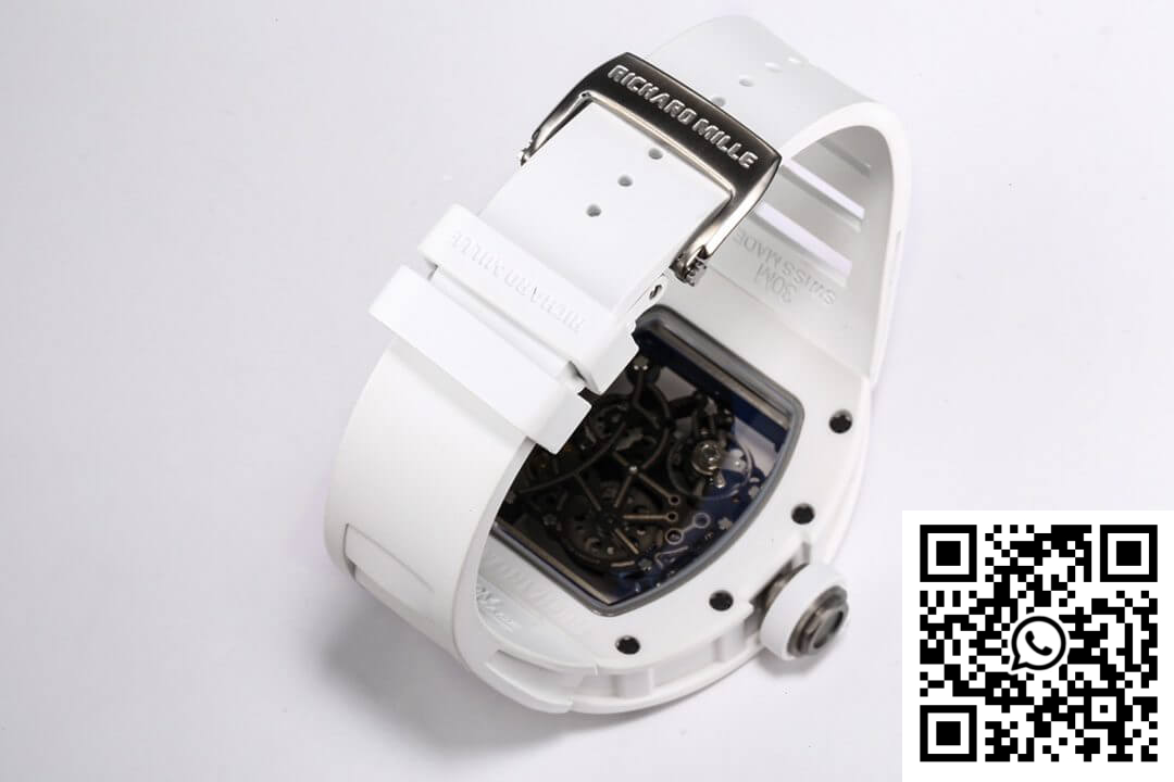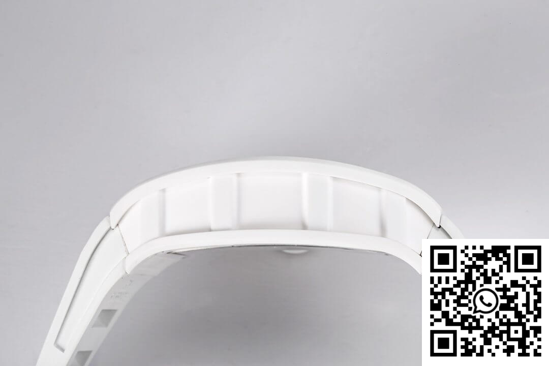 Bezel: Encasing the dial is the complementary bezel, crafted from white ceramic, mirroring the luxurious feel and sleek design seen in high-fidelity knockoff watches. It seamlessly integrates with the dial, enhancing the overall fluidity and harmonious design of this Richard Mille replica.