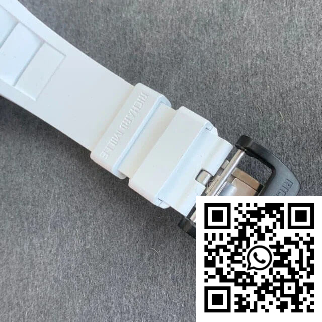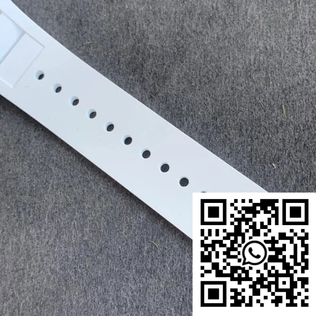 Bracelet: This replica Richard Mille is accompanied by a white rubber strap, which merges comfort with striking design. The strap’s flexible and durable material ensures a secure fit while accentuating the watch’s sporty yet elegant appeal.