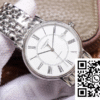 Bezel: The elegant stainless steel bezel accentuates the overall aesthetic appeal of this 1:1 replica watch. Polished to a luxurious sheen, it harmoniously complements the White Dial, creating a seamless transition across the watch face.