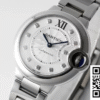 Case: The AF Factory replica of the Ballon Bleu De Cartier WE902074 boasts a solid stainless steel case with a diameter of 33mm, carefully crafted to replicate the original aesthetics. Its polished surface delivers exceptional shine and sophistication, while the iconic fluted crown is expertly recreated and adorned with a cabochon synthetic spinel, exuding timeless Cartier charm.