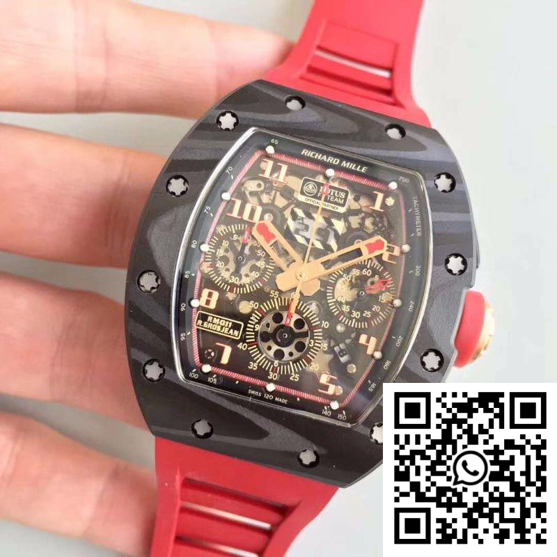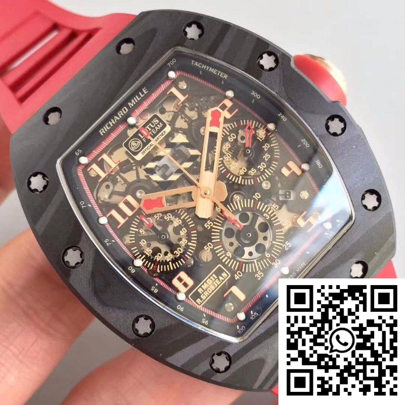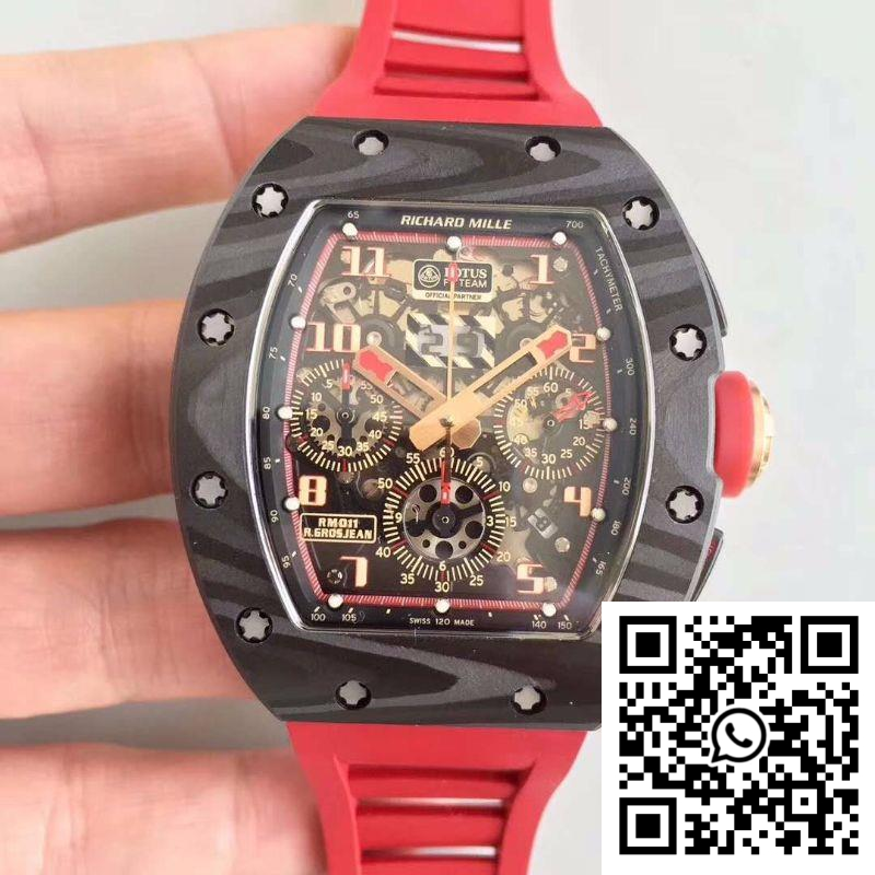 Fake Richard Mille RM011 Lotus F1 Team Romain Grosjean Forged Carbon Black Skeleton Dial by KV Factory – The Pinnacle of Prestigious Replica Craftsmanship