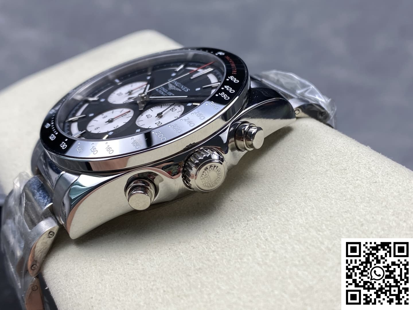 Dial: The distinct Panda dial prominently showcases a stylish contrast with dark subdials set against its lighter surface, reflecting the celebrated design of Longines Sports. This expertly crafted dial offers excellent legibility, marrying elegance with the superb functionality expected from a knockoff that endorses the iconic Longines aesthetic.