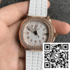 Bezel: Adding a layer of opulence to the timepiece, the bezel is adorned with 46 top Swarovski crystals. This embellishment ensures a sparkling elegance, providing an eye-catching yet tasteful enhancement that mirrors the high standards set by Patek Philippe.