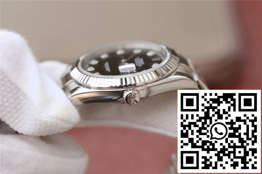 Dial: This 1:1 EW Factory replica watch boasts a distinguished black dial that embodies simplicity paired with elegance. The baton-style hour markers and sleek hands are replicated with careful precision, featuring luminescent filling for visibility in low-light conditions. Listeners of time will appreciate the finely tailored date window at 3 o’clock, complete with an accurate date font, ensuring that this knockoff retains the aesthetic fluidity genuine Rolex watches are renowned for.