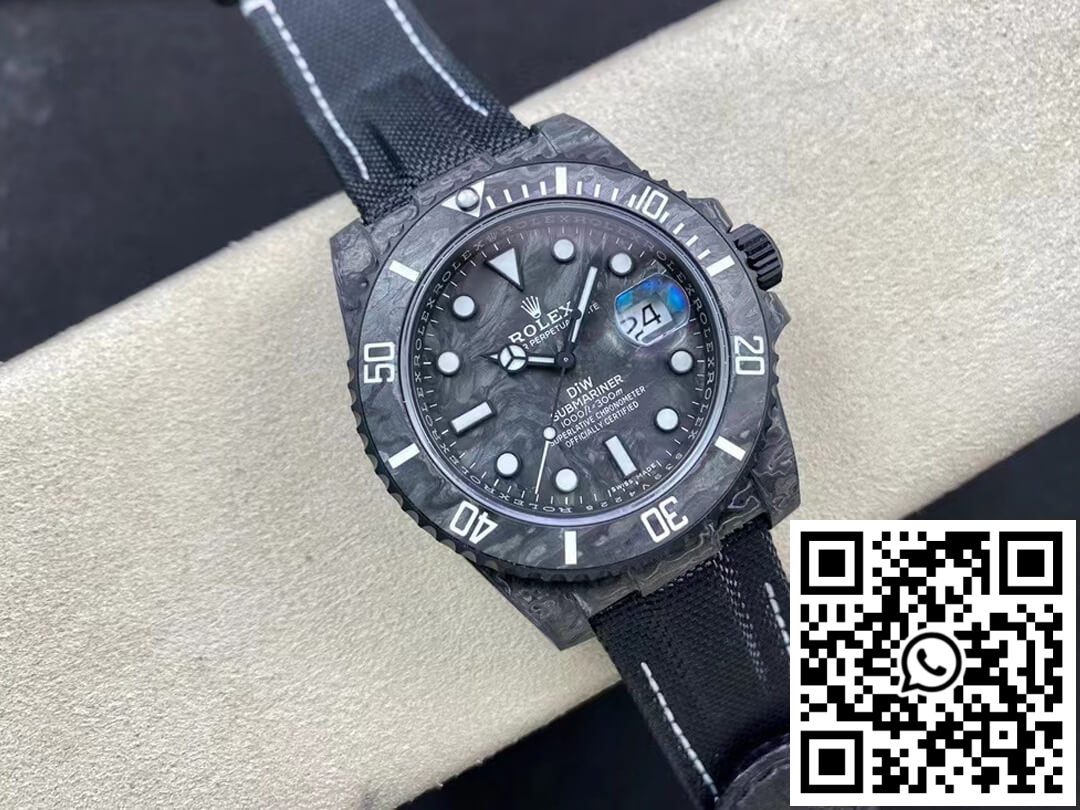 CASE: The Rolex Submariner VS Factory DIW Carbon Fiber Dial replica is elegantly crafted with a classic 40mm diameter case. Made with resilient materials and a polished finish, it mimetically captures the allure of genuine Rolex models. The screw-down case back and Twinlock double waterproofing crown system offer robustness and durability typical for underwater use, preserving its renowned status as a diving watch first released in the 1950s.