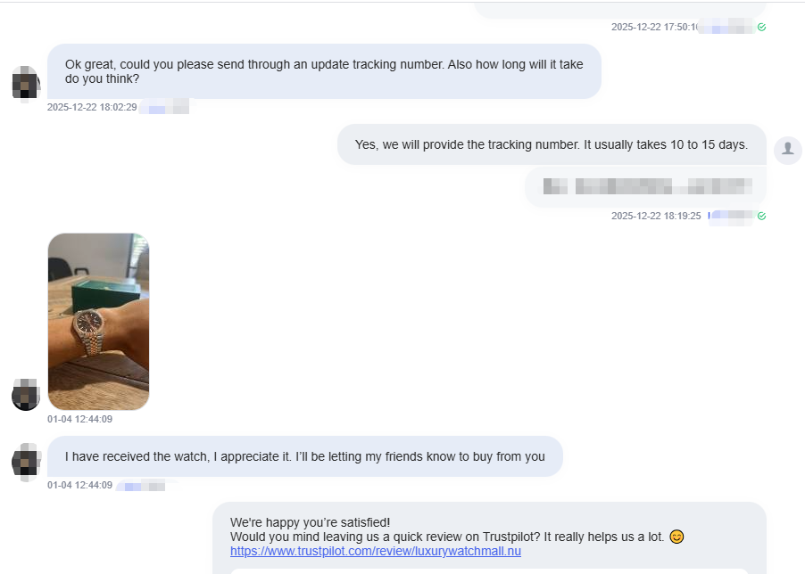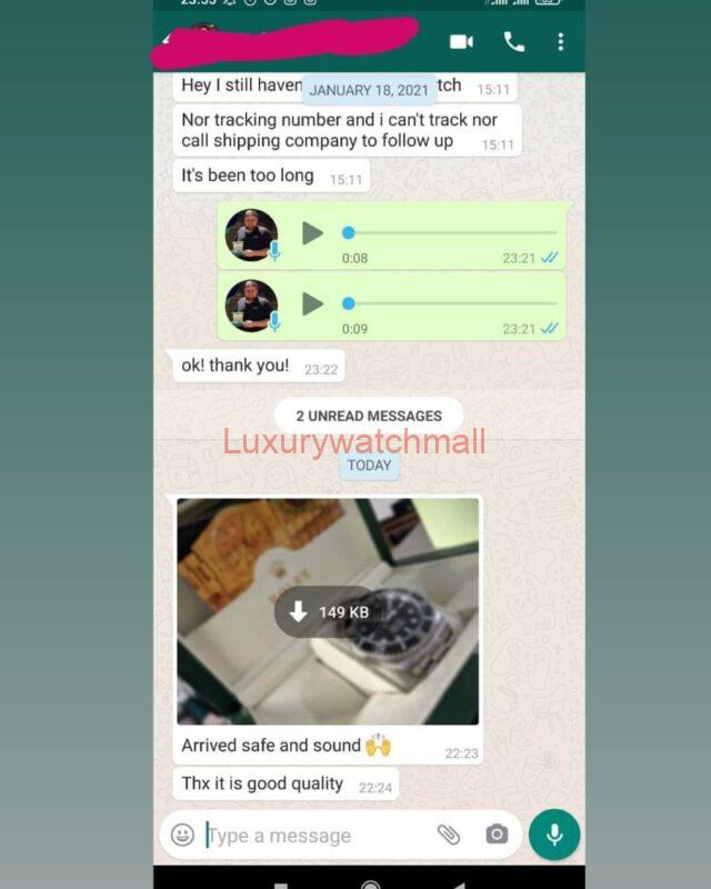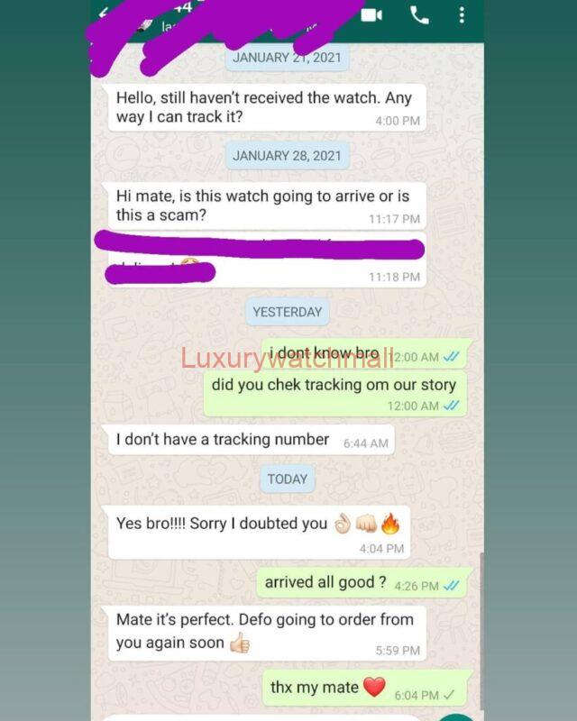 Below are some real customer reviews from WhatsApp to prove the authenticity of Luxurywatchmall. You can feel confident when buying watches from Luxurywatchmall.