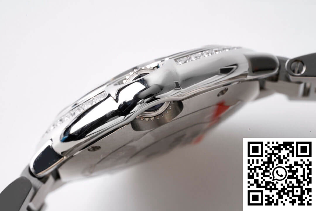 Bezel: The highlight of this replica watch is its stainless steel bezel set with 42 diamonds, reflecting light beautifully with every wrist movement. This diamond-encrusted bezel not only adds a luxurious touch but also elevates the entire design of this fake version, ensuring it stands out as a true copy of the celebrated Cartier lineage.