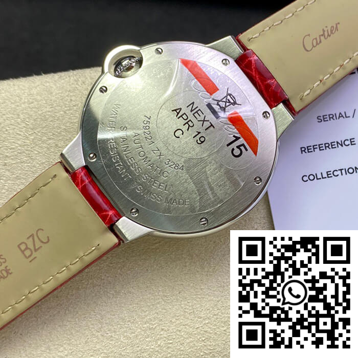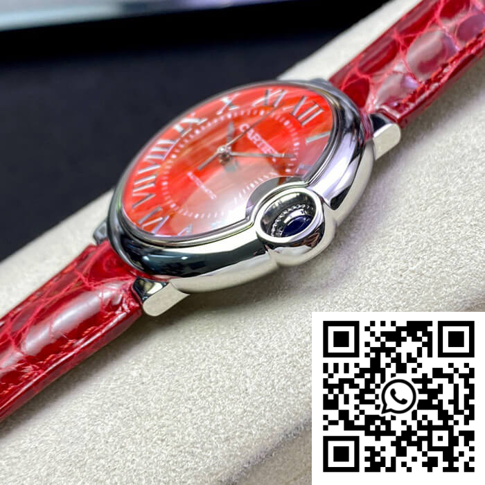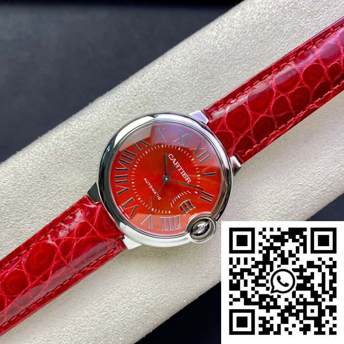 Fake Ballon Bleu De Cartier 36MM Red Leather Strap by 3K Factory – A Distinctive Blend of Elegance and Craftsmanship