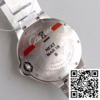 CASE: The JF Factory produces an exquisite 1:1 clone of the Cartier Ballon Bleu with a beautifully crafted 36mm round case. Fashioned from fine steel, this knockoff watch mirrors the authentic version in every nuance of texture and structural integrity. The CNC numerical control technology restores the genuine article’s structure, ensuring that the thickness of each ear bottom yarn line mirrors the original flawlessly. The concave waterproof ring with sandblasting lettering screw on the back showcases precision and robust engineering.