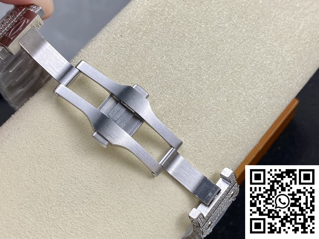 CASE: The Cartier Santos W2SA0020 Replica watch from the AMG Factory is crafted with a meticulous focus on precision and quality. Featuring a 40 mm stainless steel case, this knockoff expertly mirrors the charm of the original. The finely polished ultra-fine case accurately emulates the authentic Cartier design, rendering a seamless and opulent appearance that is consistent with genuine models.