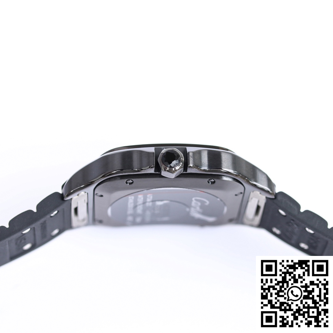 Dial: A testament to the GF Factory’s precision, the black multi-faceted spinel on the crown and synchronized head reflects sophistication. The sleek cutting surfaces, restored 1:1, are indistinguishable from the authentic Cartier design. The blackened dial exudes versatility, complementing both formal and casual wear styles. This bold design enhances the watch’s visual appeal, making it a timeless classic for any wrist.