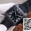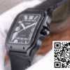 CASE: The Cartier Santos WSSA0039 V6 Factory edition comes with a precise 39.8mm stainless steel case enveloped in an authentic ADLC carbon plating. This unique coating is synonymous with luxury and resilience, providing a sleek, black finish that emulates the genuine model. Crafted to perfection, this knockoff replicates the weight and feel of an original Cartier case, designed for durability and style.