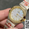 CASE: Meticulously crafted by TW Factory, this replica features a 25mm stainless steel case that mirrors the authentic Omega Constellation design. Its robust construction ensures durability while maintaining a high-polish finish that reflects our commitment to quality replication. The delicately engraved Omega logo on the case back adds a layer of authenticity to this exquisite timepiece clone.