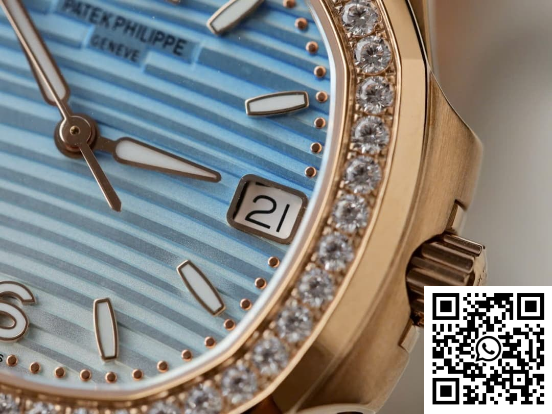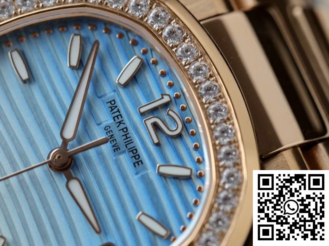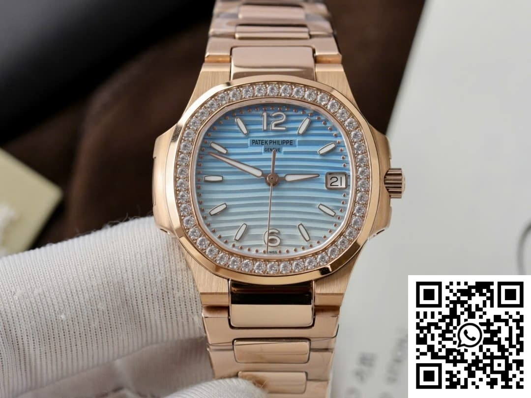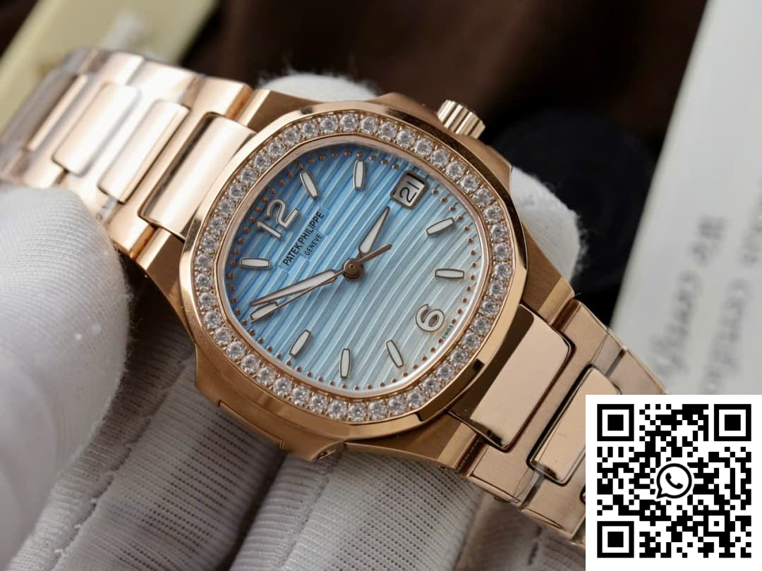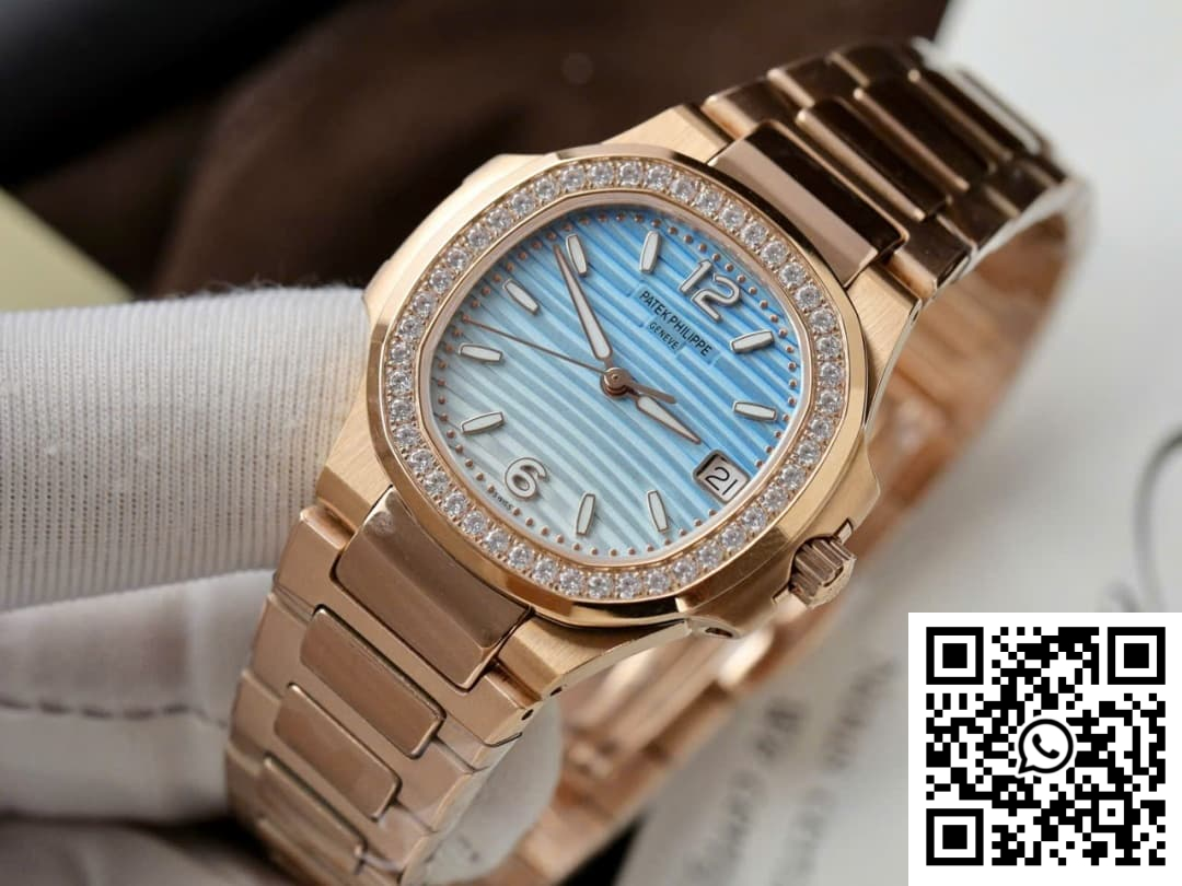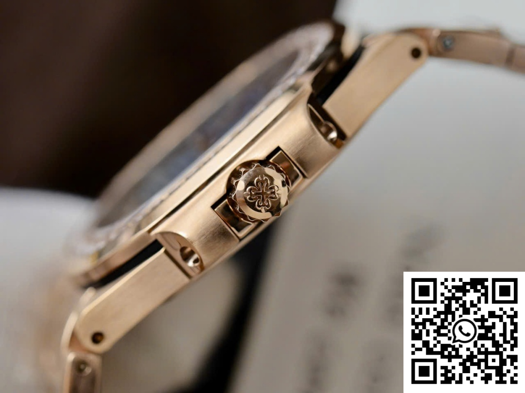 CASE: Discover the alluring charm of our Patek Philippe Nautilus 7010R replica, crafted meticulously by GR Factory. This exquisite timepiece boasts a sleek 32mm case diameter designed specifically for the ladies. The rose gold-toned finish masterfully mimics the original, while the case preserves the delicate curves and contours that mark the Nautilus as a design icon. Every dimension is refined with precision to deliver a super clone that holds its own against its genuine counterpart.
