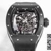CASE: Experience the luxurious feel of the Richard Mille RM-055 BBR Factory Black Ceramic Case, a premier example of high-end watchmaking in the replica industry. Crafted with precision, the case measures an impressive 49.90mm x 42.70mm x 13.5mm, delivering a robust yet sophisticated presence on the wrist. The black ceramic material ensures durability and scratch resistance, while maintaining a lightweight profile for daily comfort.