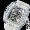 Bracelet: The strap of the RM 56-01 replica is made from top-grade rubber, designed for comfort and durability. The ergonomic design and adjustable deployment buckle of the strap ensure a perfect fit, while its understated aesthetic complements the transparent case beautifully. The strap successfully mirrors the feel and quality of the authentic Richard Mille design.