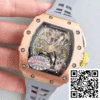 Case: Crafted to perfection, this Richard Mille RM011 replica from KV Factory features a robust 316 stainless steel construction, cloaked in exquisite rose gold. The case measures 40 mm x 50 mm x 16.15 mm, offering a perfect balance between grandeur and comfort. Its polished bump appearance mirrors the genuine timepiece, embodying the essence of Richard Mille’s iconic design.