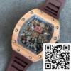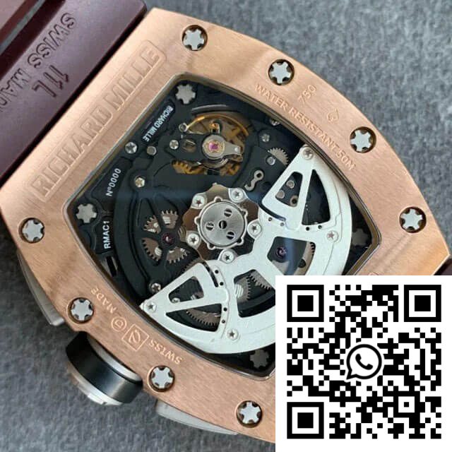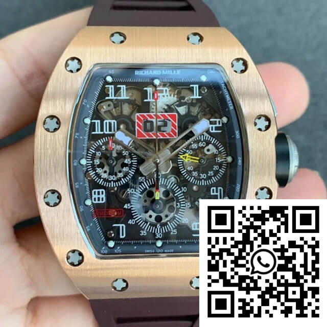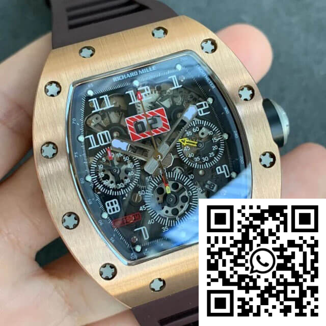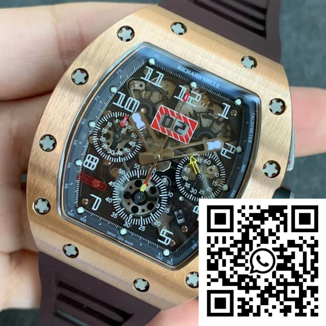 Fake Richard Mille RM011 KV Factory Rose Gold Brown Rubber Strap – Precision in Replication