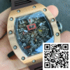 CASE: The Richard Mille RM011 KV Factory replica boasts a finely crafted 40mmx50mmx16mm rose gold-toned case. Utilizing state-of-the-art cloning techniques, this case mirrors the original in every dimension and detail, perfectly capturing the luxurious appeal of the authentic timepiece. The case construction ensures durability while maintaining an exquisite, polished aesthetic.