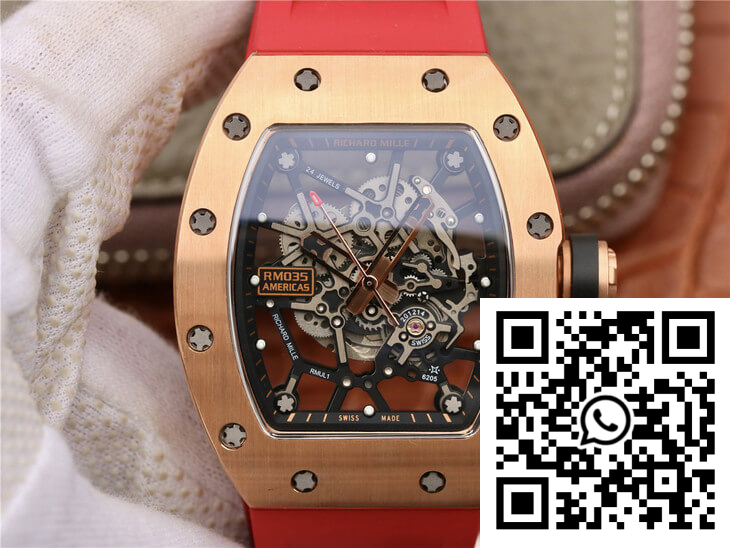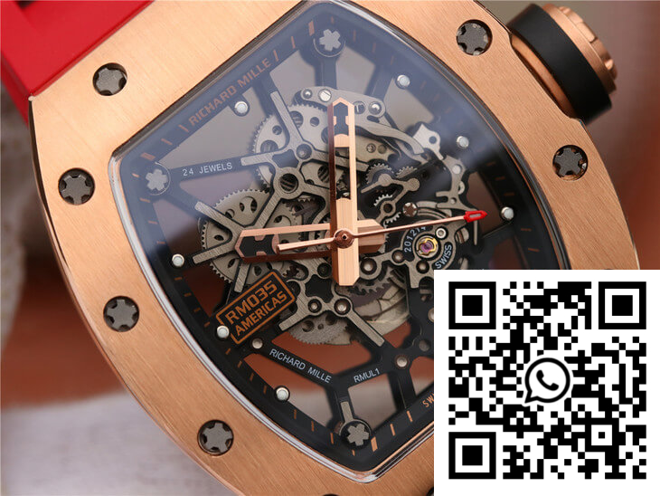 In sum, the Richard Mille RM035 Americas KV Factory in Rose Gold stands as a testament to the innovative craftsmanship and attention to detail that defines outstanding replica creations. Drawing inspiration from Richard Mille’s pioneering spirit, this piece is undeniably a masterpiece that elevates the art of watchmaking to new heights. Whether you seek the embodiment of elegance or the assurance of meticulous detail, this watch invites you to indulge in its luxury, proving an ideal companion for any connoisseur of luxury timepieces.