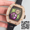 CASE: The Richard Mille RM19-02 KV Factory Replica is meticulously crafted with an 18k rose gold case, offering a luxurious and elegant appearance. The case measures 38.3mm x 45.4mm, replicating the exact dimensions of its original counterpart, ensuring an authentic look and feel on the wrist. The bezel is set with dazzling diamonds, enhancing the luxurious design, while remaining true to the original’s visual impact. The high-quality craftsmanship of this knockoff guarantees durability and style.
