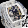 CASE: The Richard Mille RM26-01 boasts an exquisitely crafted case inspired by the complex barrel design, rendering a flawless replica of the Swiss original. The 1:1 clone features crystal elements paired with titanium alloy screws, which not only provide durability but also add an authentic aesthetic feel. The case design incorporates intricate lines and angles, demonstrating the pinnacle of replica watch craftsmanship.