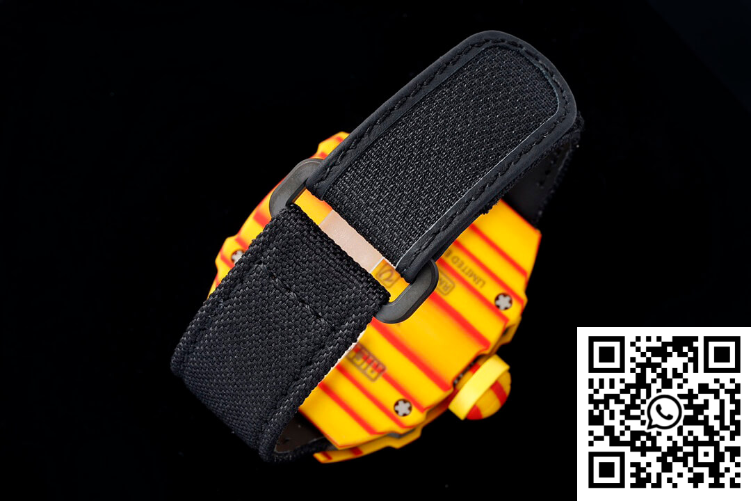 Bracelet: The black strap, constructed from premium-grade materials, ensures both comfort and durability. It mirrors the ergonomic perfection of the original design, providing a snug yet breathable fit for extended wear. The strap enhances the aesthetic balance of this 1:1 copy of the Richard Mille RM27-03 while highlighting the sporty elegance of the timepiece.