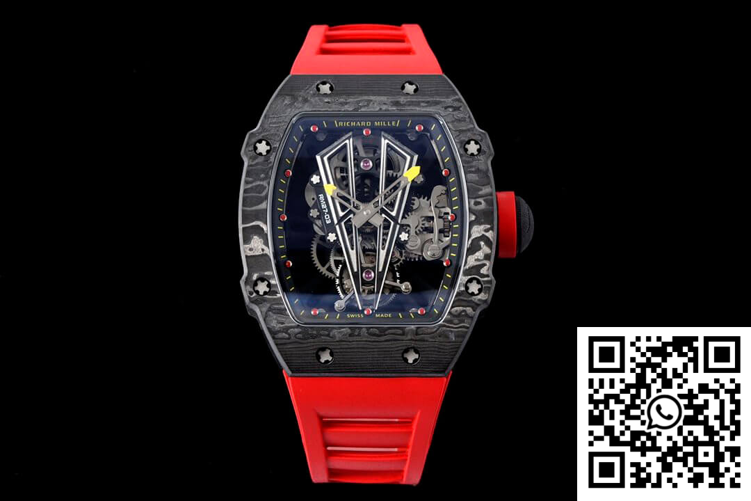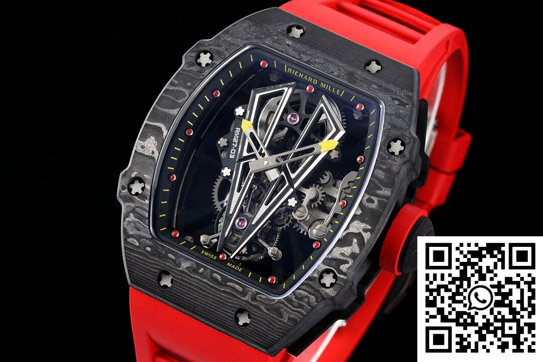Every detail of this watch – from the Swiss movement to the wrist-conforming design and lightweight feel — makes it more than just a replica. It is an item that blends form and function, enhancing your look with a touch of luxury. Whether you wear it as a bold statement piece or a practical daily accessory, the Richard Mille RM27-03 Rafael Nadal Tourbillon replica ensures you’ll stand out, commanding both admiration and respect. Experience the pinnacle of fake luxury watches with this 1:1 masterwork that epitomizes modern fashion and superior craftsmanship.