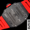 Dial & Design: The dial serves as the centerpiece of this exceptional fake watch, showcasing exquisite craftsmanship and innovative design. The layout is sporty yet luxurious, with impeccable attention to detail, ensuring that it reflects a true 1:1 copy of the original aesthetics. The vibrant red accents, coupled with the sophisticated skeletonized design, create a sense of movement and depth, making this watch truly captivating to the eye.