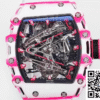 Dial: The highlight of this 1:1 copy is its hollow dial, engineered to present an authentic view into the inner workings reminiscent of the Swiss mastery. With precision laser-cut markings and finely detailed hands, the dial encapsulates the spirit of Richard Miller’s designs. Each element, from the time scale to the branding, is a faithful replication, guaranteeing that the aesthetic appeal is identical to that of the original.