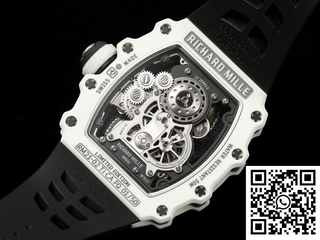 Movement: At the heart of this replica lies the RM21-02 movement, a testament to modern watchmaking technology. This imitation is designed to precisely match the performance and aesthetics of the original, making it a perfect copy that achieves the high standards synonymous with Richard Miller.
