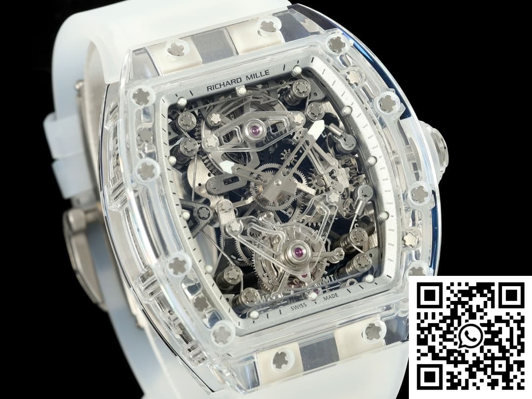Crystal: A high-resilience sapphire crystal is employed for the replica watch to reflect the stunning structure of the original. Renowned for durability and scratch resistance, the crystal magnifies the brilliance of the manual mechanical movement within while providing optimal transparency. Its integration with the case adheres to a precise 1:1 replication of the original Richard Miller design.