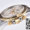 CASE: At the heart of the Clean Factory’s offering is the stunning 40mm solid construction that mirrors the genuine Rolex Daytona’s iconic form. Crafted with precision, the case combines beauty and durability by employing a meticulous electroplating technique. This replica watch ensures supreme comfort with a design that effortlessly mimics the original. The golden hue of the case adds a touch of elegance, bolstered with advanced scratch-protection techniques to maintain its pristine look.