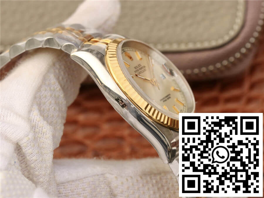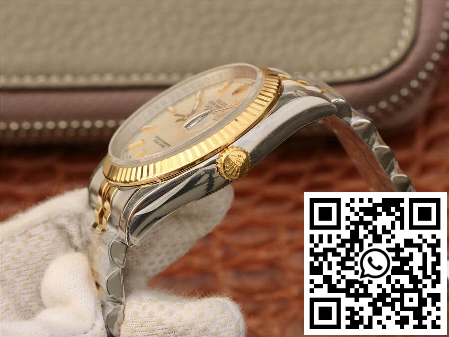CASE: The AR Factory presents a remarkable 1:1 clone of the timeless Rolex Datejust 116233, featuring a meticulously crafted 36mm case. Constructed with solid 904L fine steel, the case boasts a luxurious yellow gold finish that truly captivates. A screw-down case back amplifies its robustness, ensuring it remains tightly sealed for optimal protection. In combination with the patented Twinlock double waterproofness system on the winding crown, you are assured of superior water resistance, allowing this watch to be a trusty companion in various conditions.